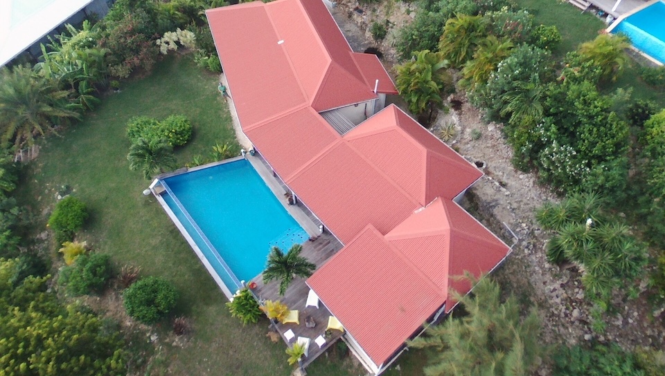 Villa privée située dans « Les hauts de Beaufils » au lieu-dit Les Basses, dans la commune de Grand-Bourg de Marie-Galante .